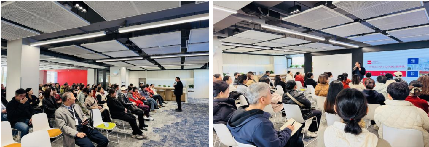 “16-18岁,是孩子自我同一性与角色混乱碰撞的‘风雷激荡期’”。刘国雄校长的开场,便精准戳中了高三家长的关注点。他以“护航高三学子安全度过青春期”为主题,结合心理学理论与校园真实案例,深入剖析了这一年龄段学生的“七大心理需求”——从物质需求到交往需求,从关注异性到自我封闭的矛盾,从学习障碍到网瘾困扰,每一个要点都让家长们频频点头。