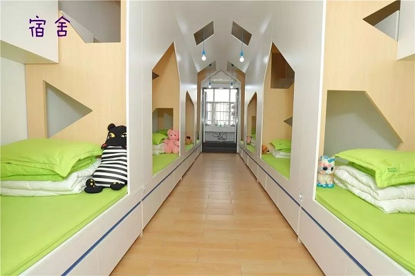 学校可走读、可寄宿:学生居住在学生宿舍中(6-8人间),宿舍配备空调、衣柜、储物柜等家具;每间宿舍有独立淋浴间和洗手间。