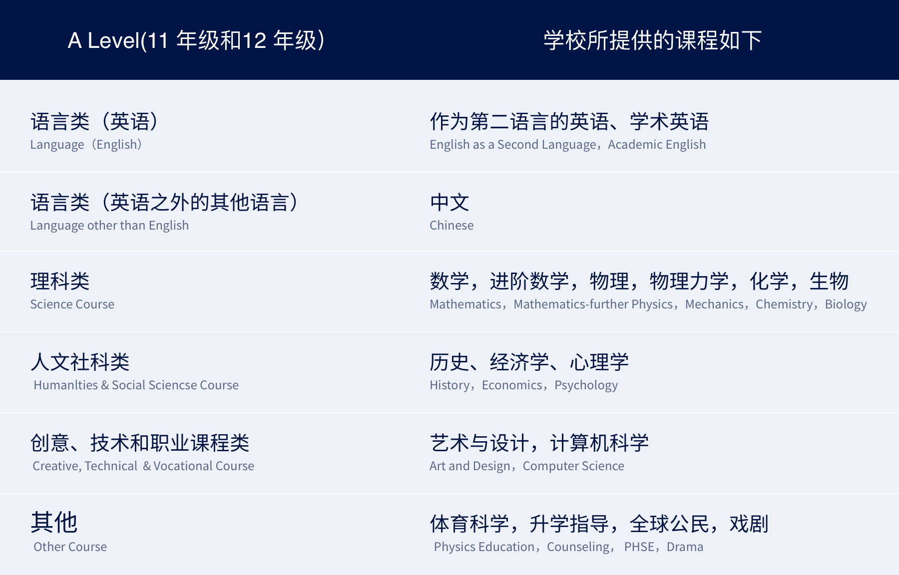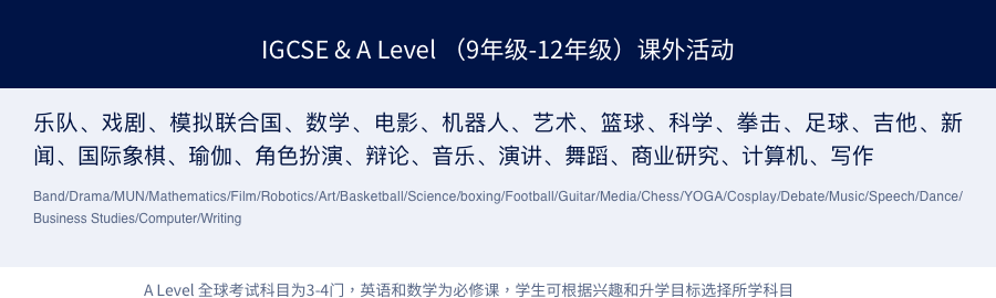 ULC先进的课程体系,等级式评分系统提供多元化的学科组合,使学生的个性化学习成为现实。学生可专注于某一专业领域或组合不同专业领域选课学习,扬长避短,发挥自己最大的潜能,为大学的选科与学习做好准备。